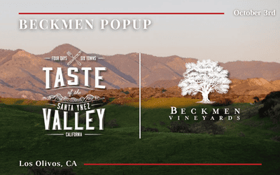 We’re excited to be one of the featured wineries at the Taste of the Santa Ynez Valley event on October 3rd in Los Olivos. Enjoy an afternoon of signature local wines — including tastings from Beckmen — and locally sourced small bites. This four-day, six-town celebration of food, wine, and more takes place October 2nd — October 5th across the towns of Solvang, Santa Ynez, Los Alamos, Los Olivos, Ballard, and Buellton. This event is packed with incredible experiences, and tickets are going fast — don’t wait, grab yours before they’re gone!